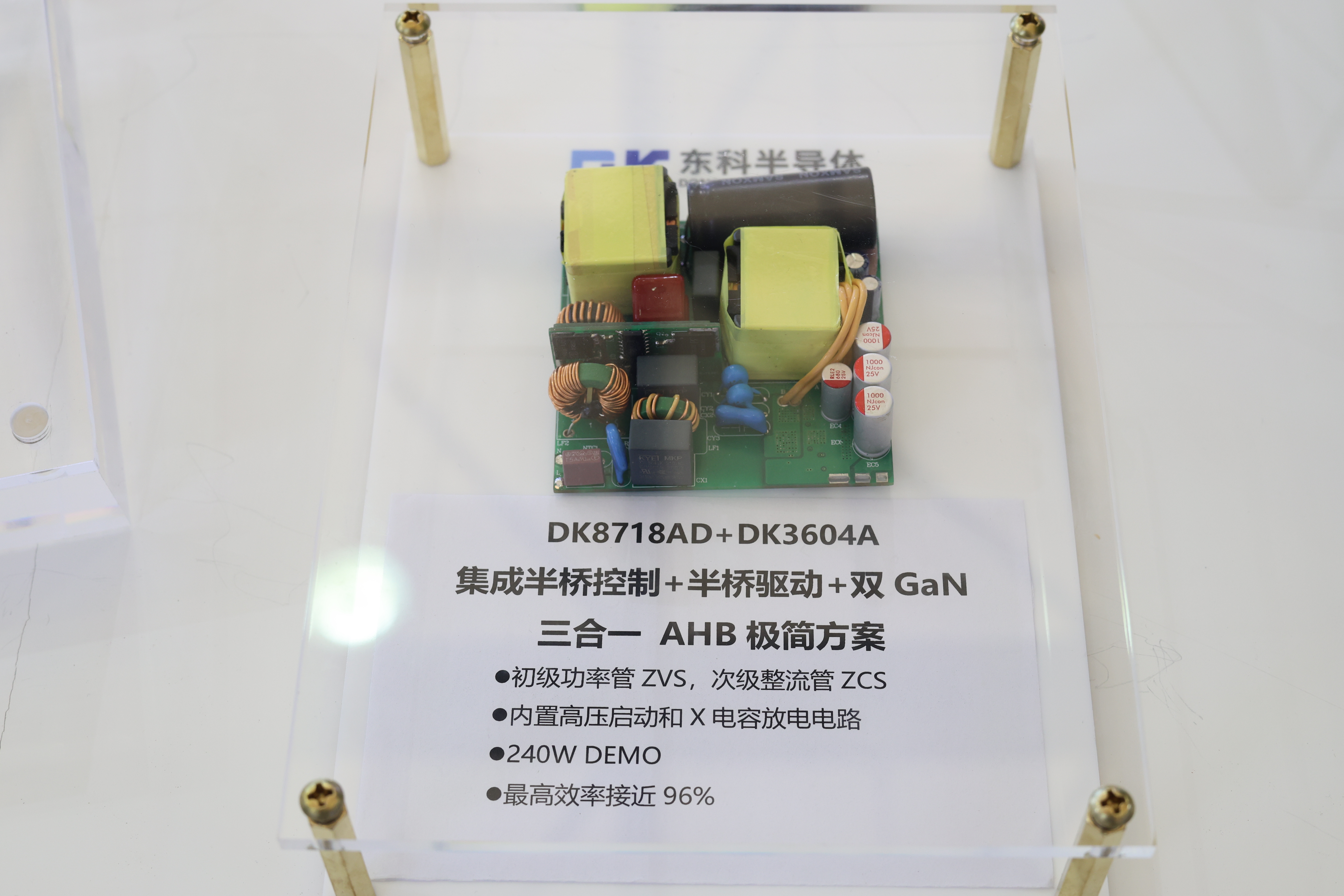 此次重磅展出了東科全新All-in-One全合封氮化鎵AC-DC電源管理芯片(不對(duì)稱半橋系列/有源箝位反激系列)。作為市面唯一的All-in-One全合封不對(duì)稱半橋解決方案DK87XXAD,有源箝位反激解決方案DK86XXAD。芯片采用三合一設(shè)計(jì),單芯片集成AHB/ACF控制+半橋驅(qū)動(dòng)+半橋GAN器件,實(shí)現(xiàn)了優(yōu)異的總線控制功能,提供卓越的性能和效率。