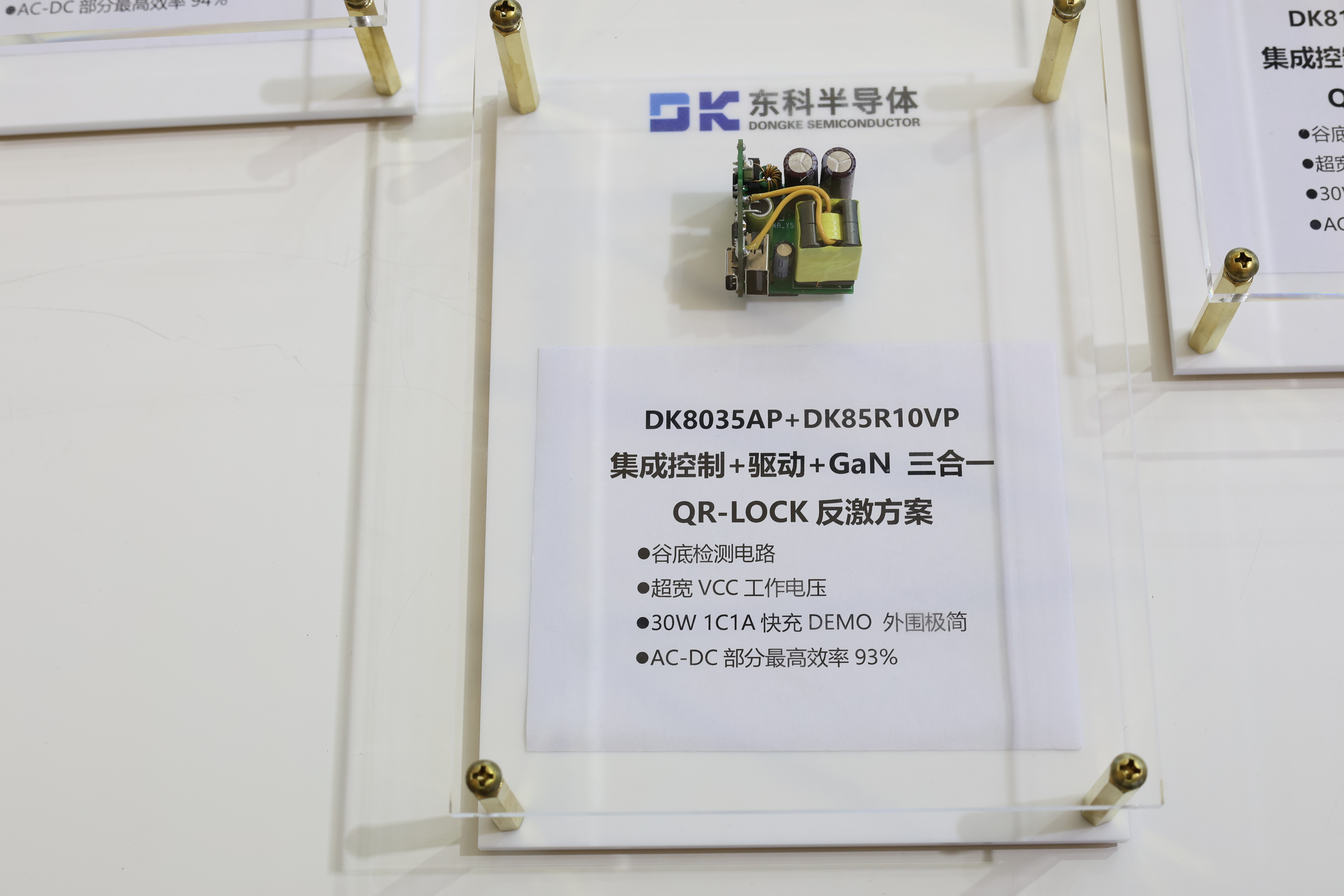 在氮化鎵AC-DC電源管理芯片領(lǐng)域,東科還帶來(lái)了全合封QR-LOCK AC-DC 電源管理芯片DK0XXG/DK80XXAP系列。產(chǎn)品輸出功率覆蓋12-75W。支持250KHz開關(guān)頻率,待機(jī)功耗低于50mW,內(nèi)置高低壓輸入功率補(bǔ)償電路。